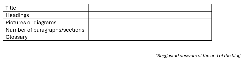This is the very first step of the treasure hunt. Spend about 30 seconds or so surveying the passage in front of you. Look at the title, headings and visuals. It’s a good idea to see how many paragraphs or sections there are, and look to see if there’s a glossary - usually at the end of the text with stars -a list of words and their definitions. Don’t worry, these are technical words that you’re not expected to know. That’s why there is a glossary!