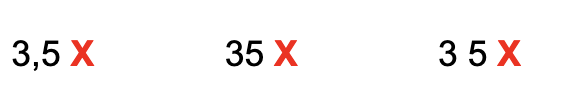 Again, there is an exception and that is for decimals. For decimals you must use a full stop (point) and must not use a comma or leave a gap. So, we would write three point five as
