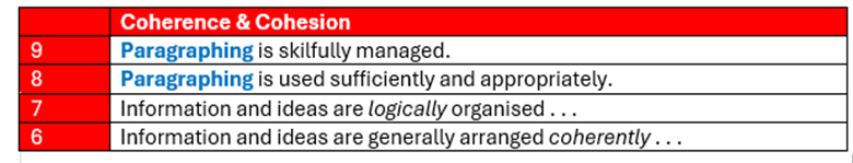 I’m sure you already know that this task requires you to write a minimum of 150 words in 20 minutes describing data or a diagram. So, how to structure those precious words?! Let’s start with looking at what the examiner wants. If you look at the Band Score Descriptors for Coherence & Cohesion, you will notice that ‘paragraphing’ isn’t mentioned until Band 8.